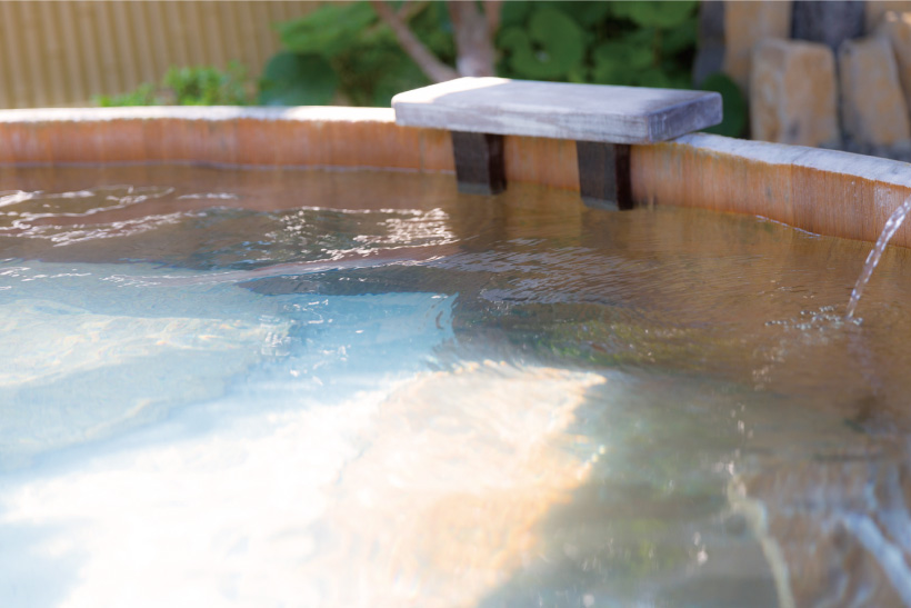 ゆーとろんでは、人肌より少し温かい37度前後のお風呂があり、そこで30分ほど半身浴をすると、疲労の原因となる物質を効果的に体外に出すことができます。もちろん温かいお風呂もしっかりご用意。ph10.3のアルカリ性「単純硫黄泉」で100%源泉かけ流し。刺激の少ない「とろ~ん」とした"なめらな感触"で体をゆっくり休めてください。